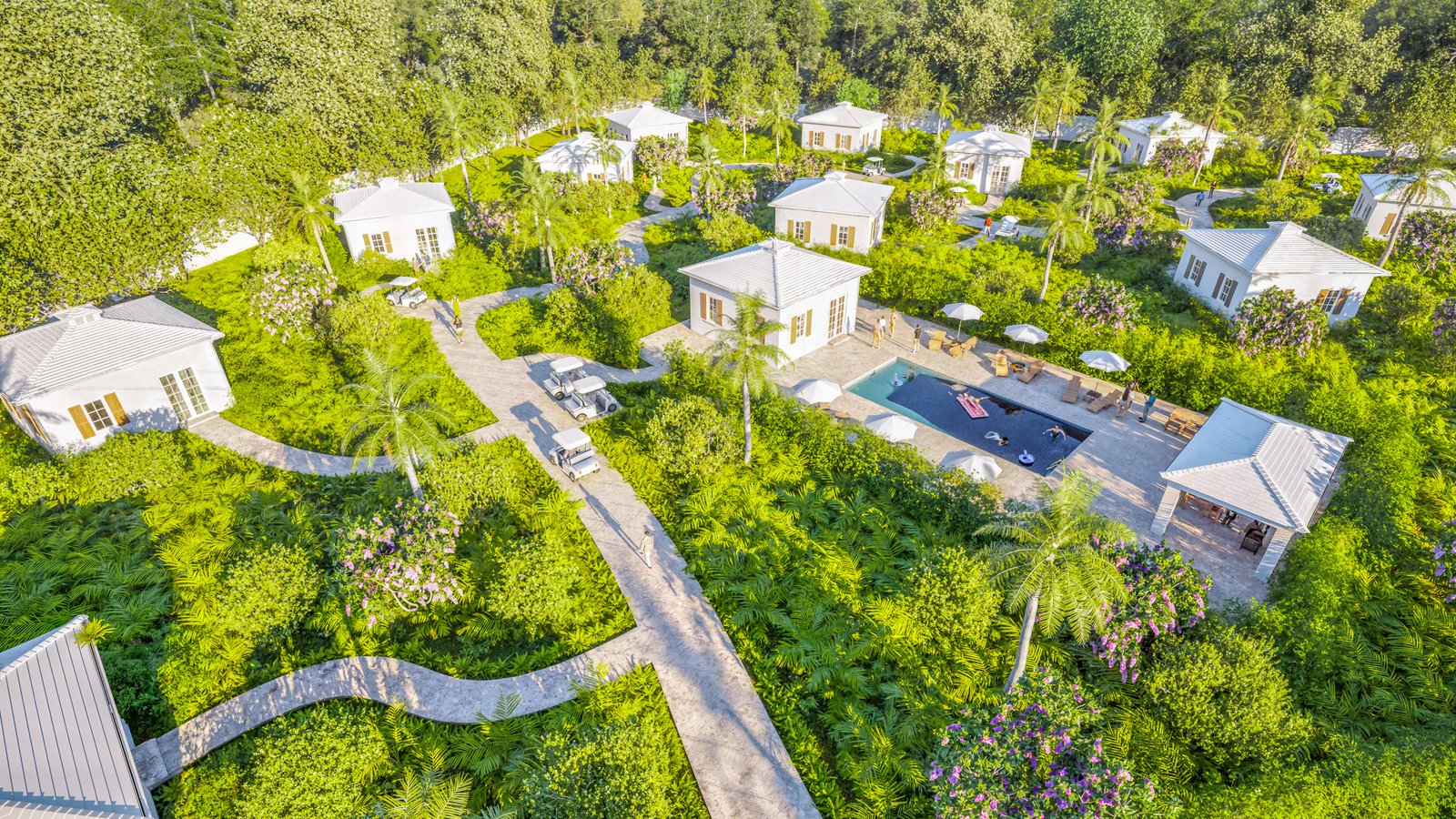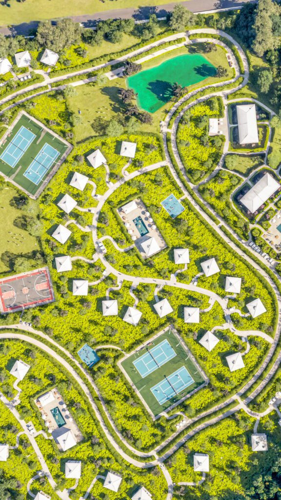 Sustainable “tiny home” clusters designed for a walkable, wellness-first lifestyle.