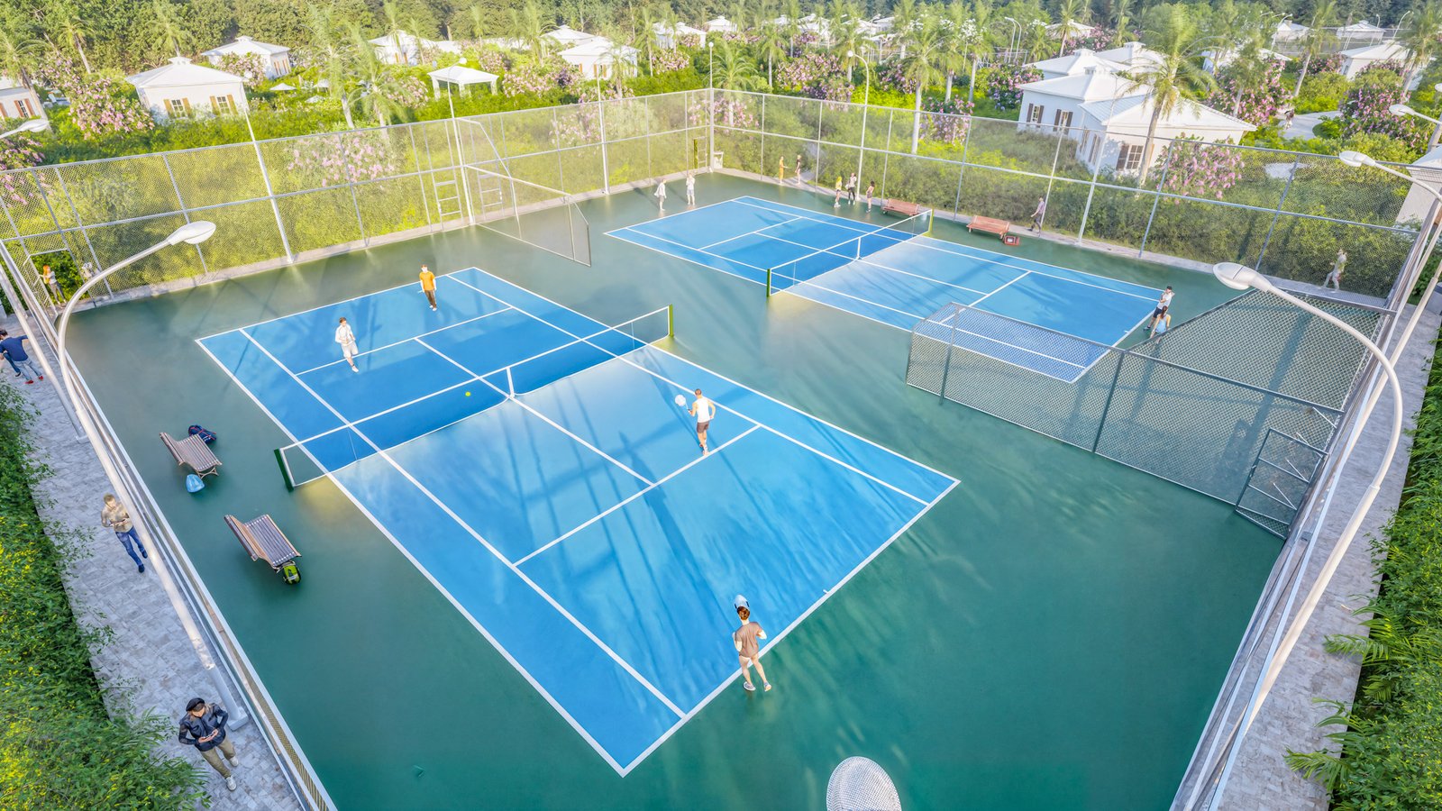 Professional-grade outdoor facilities for Pickleball, Basketball, and Tennis.