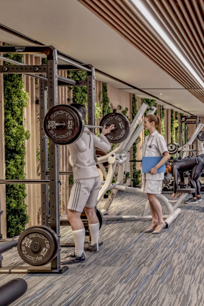 Our facility is meticulously designed to dissolve the walls between clinical medicine and active recovery. By co-locating world-class diagnostic suites, elite-level strength floors, and advanced recovery tech, we’ve created a “frictionless” health ecosystem.