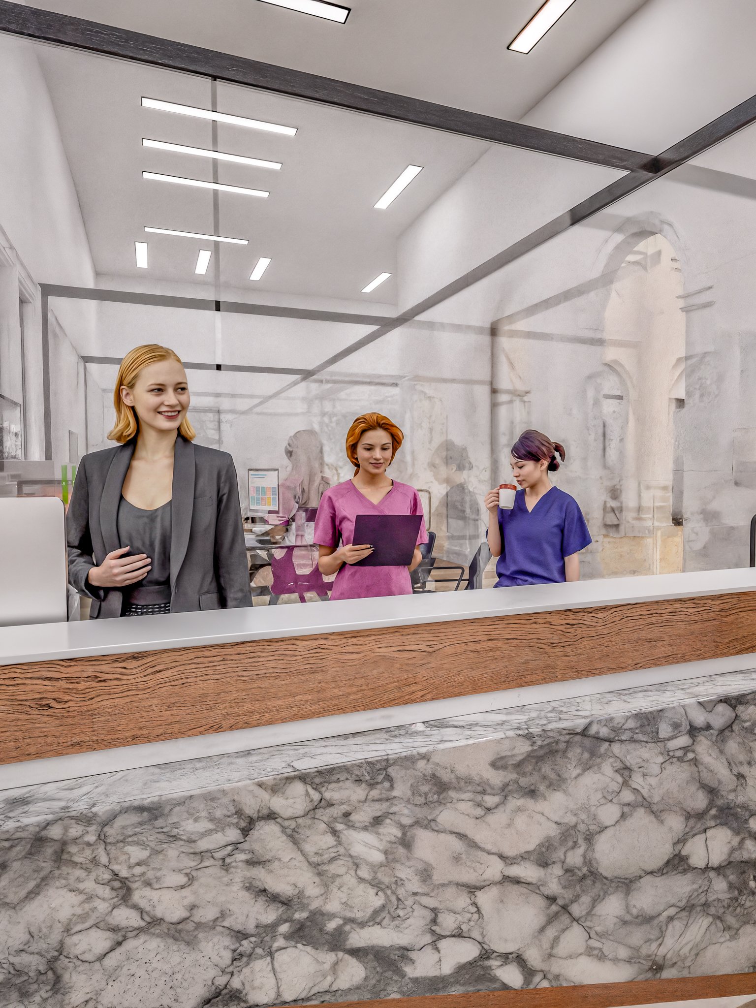 Our reception area is designed to bridge the gap between high-end hospitality and clinical excellence, offering a seamless check-in experience for patients and athletes alike.