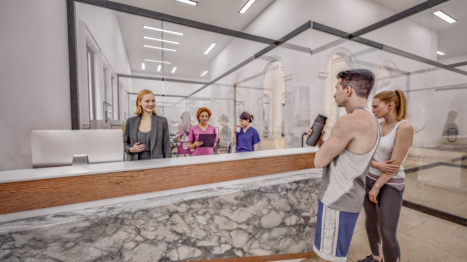 The Palazzo Sports experience begins in our soaring, light-filled atrium, where classical architectural elegance meets modern high-performance design. This central hub serves as a sophisticated gateway, featuring a grand stone archway and an expansive, open-volume layout that immediately sets a tone of prestige and professional excellence. Staffed by a dedicated concierge team, the reception area is engineered for seamless navigation between our clinical wings and athletic zones.