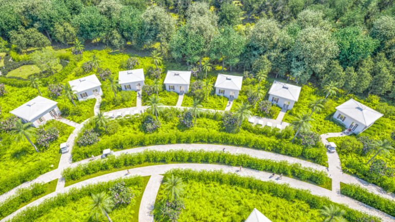 Sustainable “tiny home” clusters designed for a walkable, wellness-first lifestyle.