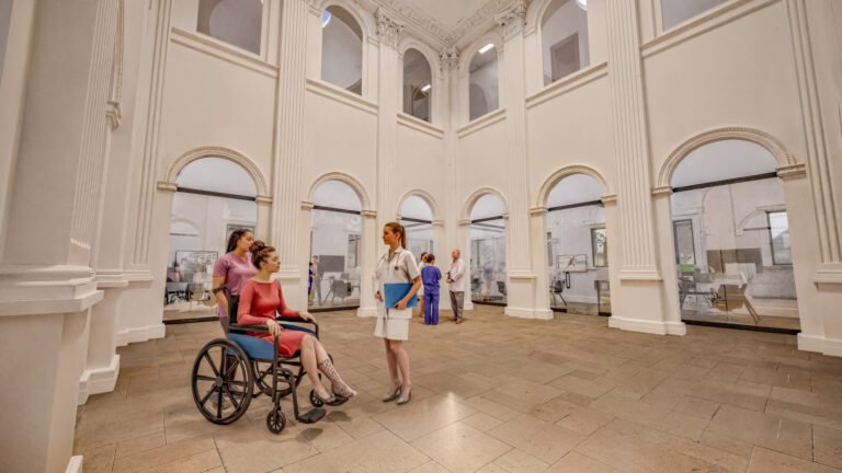 The Palazzo Sports experience begins in our soaring, light-filled atrium, where classical architectural elegance meets modern high-performance design. This central hub serves as a sophisticated gateway, featuring a grand stone archway and an expansive, open-volume layout that immediately sets a tone of prestige and professional excellence. Staffed by a dedicated concierge team, the reception area is engineered for seamless navigation between our clinical wings and athletic zones.
